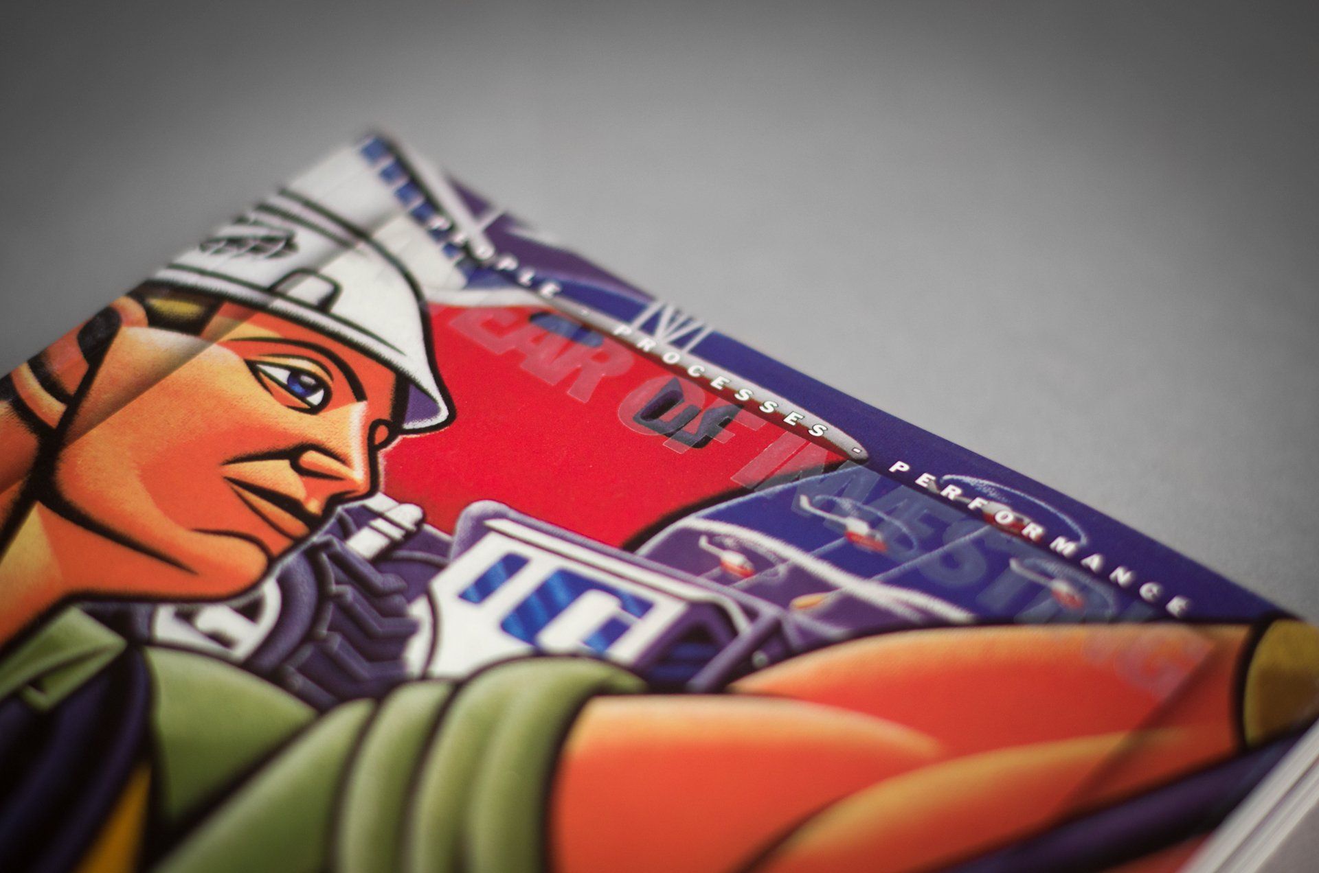 For a few years, Richard had been following the career of an up-and-coming illustrator named Doug Fraser, whose stylized, Soviet-looking drawings had begun to grace the covers of magazines like Business Week. Fraser’s work conveyed strength, collaboration, order and shared outcomes. These were just the messages Richard wanted illustrated on the Veritas annual. Despite the fact that this was IVY DESIGN’S first project and despite Fraser’s rising star — Fraser went on to illustrate covers for Time Magazine, the New York Times, Forbes and Rolling Stone magazine — Richard called him up and asked him to help. Fraser accepted. And the results helped to create a project our team is still proud of today.