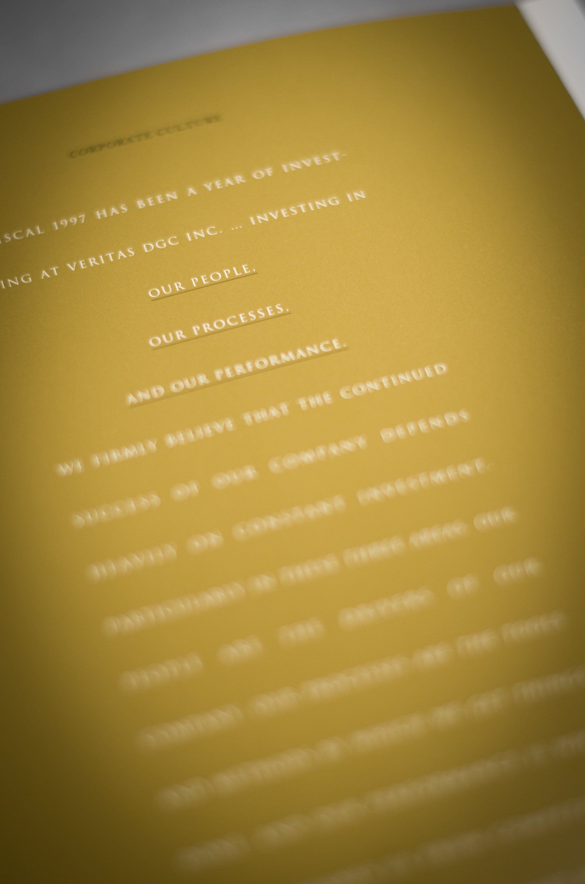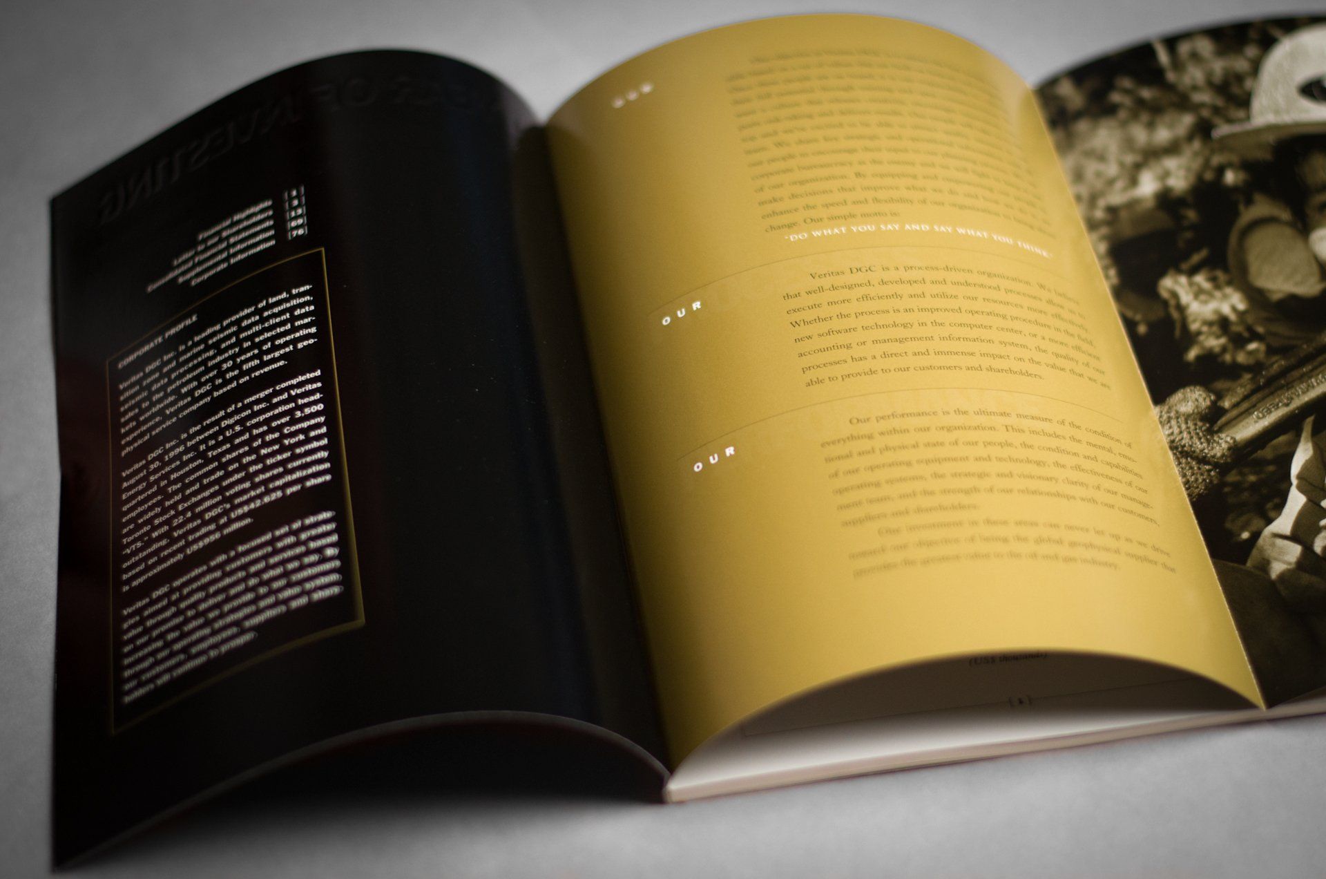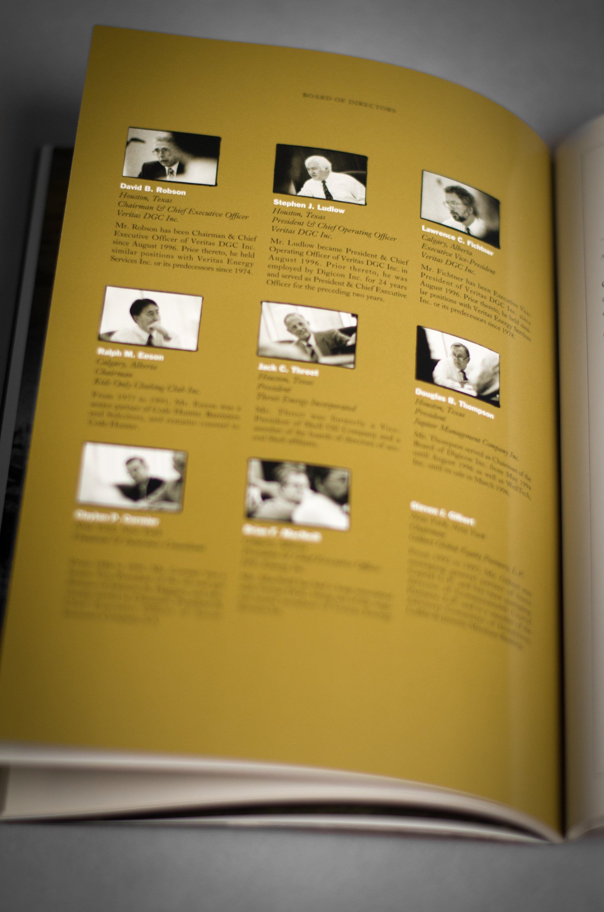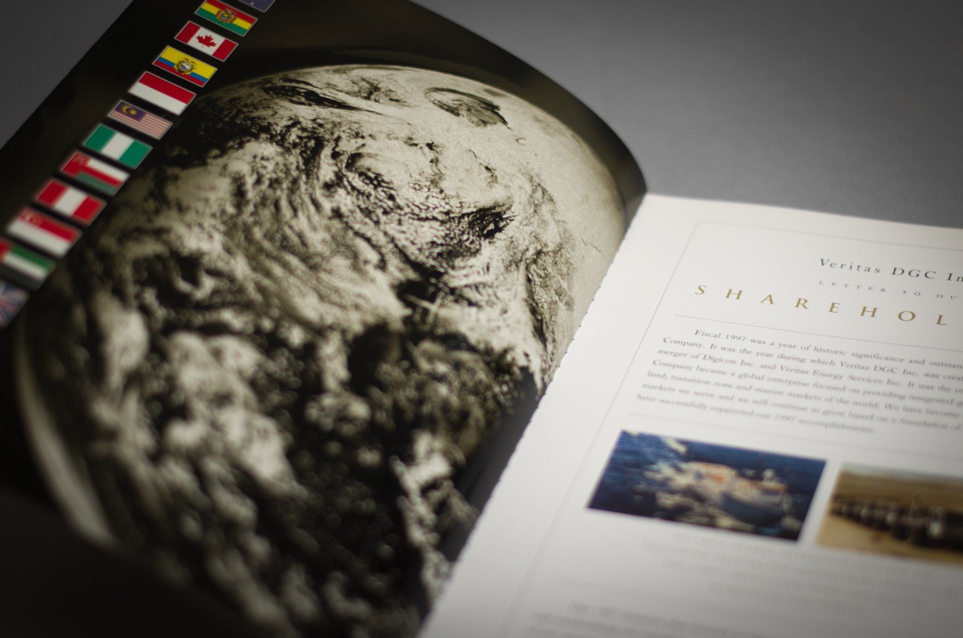 Richard’s first project was an annual report for Veritas DGC Inc., a publicly traded, international seismic corporation. This project, Docket #0001, became an exercise in calculated moxie.